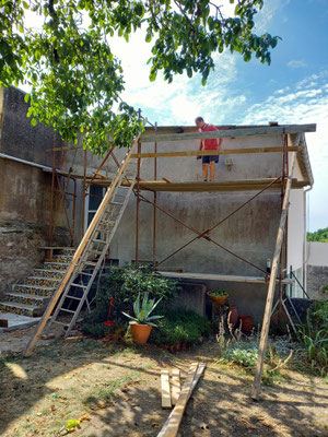 Merci Christian, François, Jose et Patrice pour l'installation de l'échafaudage !