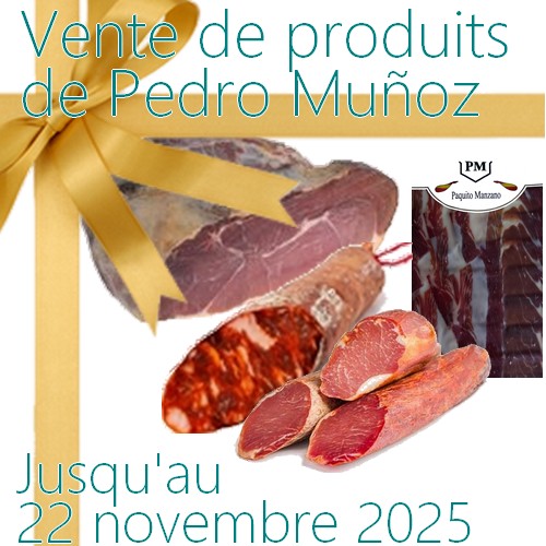 Une fois par an nous proposons des produits de la ville de Pedro Muñoz, ou de la région de Castilla la Mancha. Ces différents produits ont pour point commun d'être élaborés à Pedro Muñoz, ou en proximité immédiate.